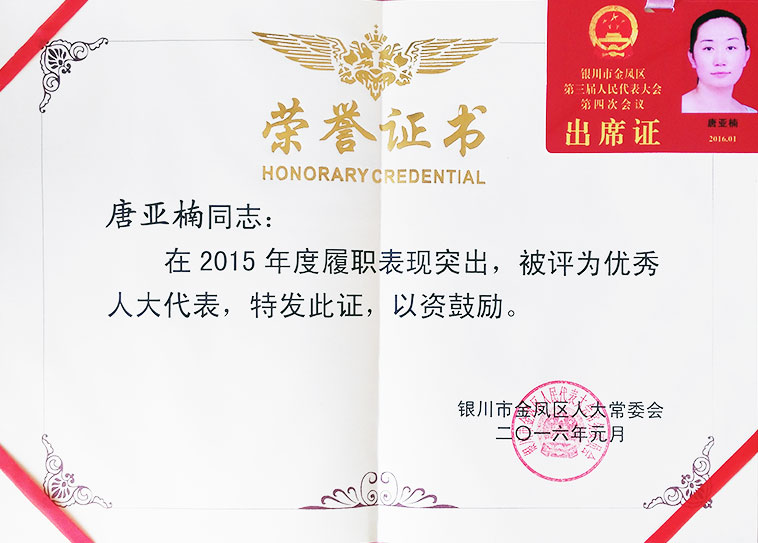 唐亞楠總經(jīng)理被評為金鳳區(qū)三屆人大優(yōu)秀代表